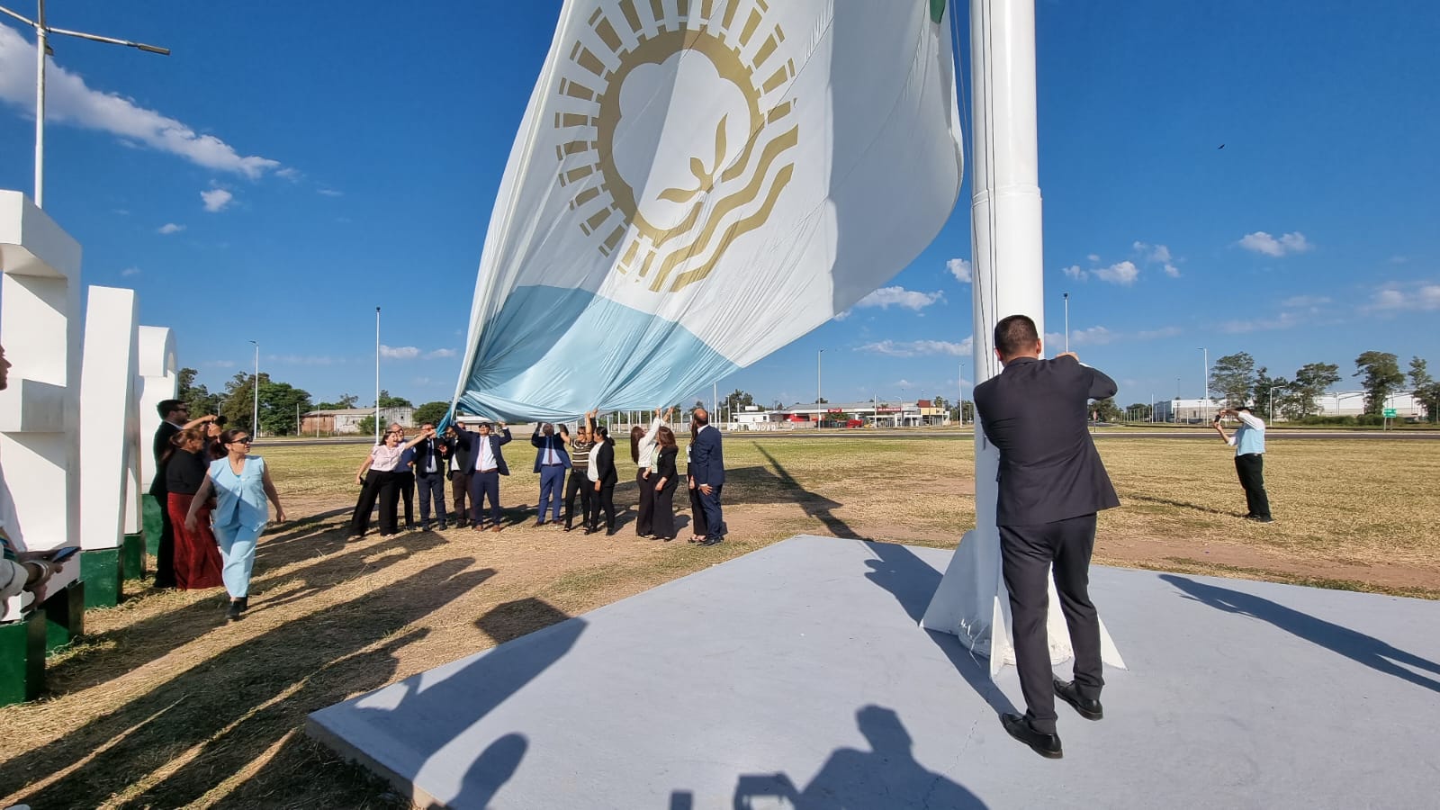 Luego, el acto continuó con el izamiento de la bandera de Sáenz Peña en la Rotonda de las rutas 16 y 95, reafirmando el orgullo y el sentido de pertenencia de toda la comunidad.