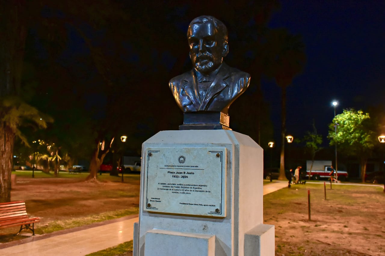 Durante la ceremonia se descubrió una placa en el busto de Juan B. Justo, fundador del Partido Socialista, en reconocimiento a su legado político y social.