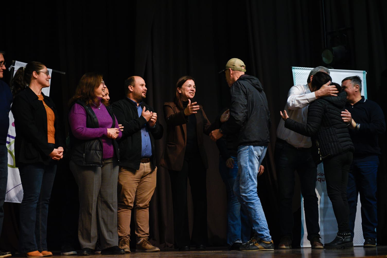 La Pesidente del Concejo Municipal Nora Gauna, junto a los concejales Denis Kisiel, María Elena Rodriguez y Soledad Pérez, acompañaron el acto de entrega de títulos de propiedad y sorteo de 26 viviendas en el Centro Cultural Municipal de Presidencia Roque Sáenz Peña.