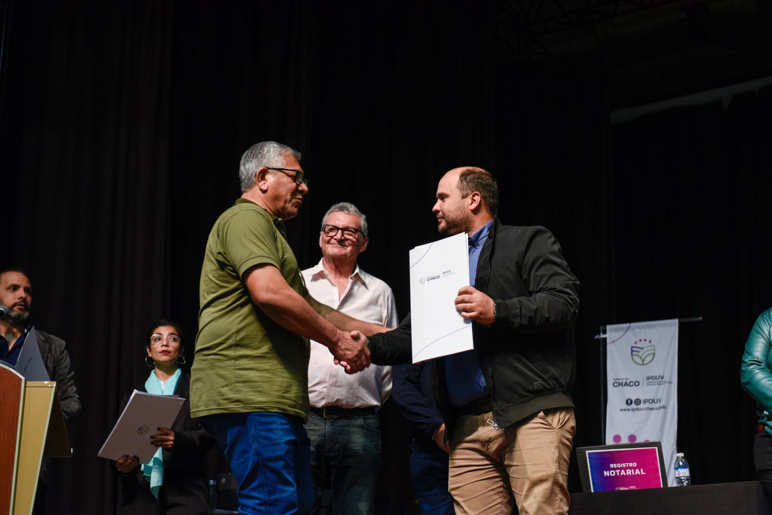El acto encabezado por el Presidente del Instituto Provincial de Desarrollo Urbano y Vivienda (IPDUV), Arq. Fernando Berecochea, quien llevó adelante el sorteo y la entrega, compartiendo la emoción de 26 familias beneficiadas en esta oportunidad.
