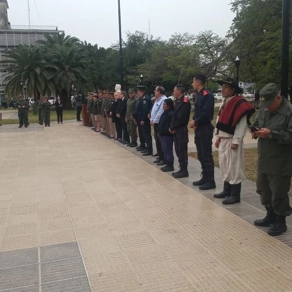 La ceremonia incluyó el izamiento del pabellón nacional y la colocación de una ofrenda floral en el busto del general Güemes.