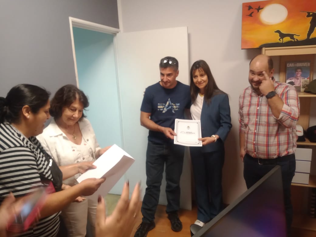 Los concejales Denis Kisiel, Soledad Pérez y Pablo Hukovsky realizaron la entrega en el local comercial de la firma, dedicada inicialmente a la joyería, relojería y armería, y que con el tiempo ha ampliado su oferta a otros rubros, incluyendo camping y pesca en su nuevo local "La Cueca", ubicado en Mariano Moreno y Saavedra.