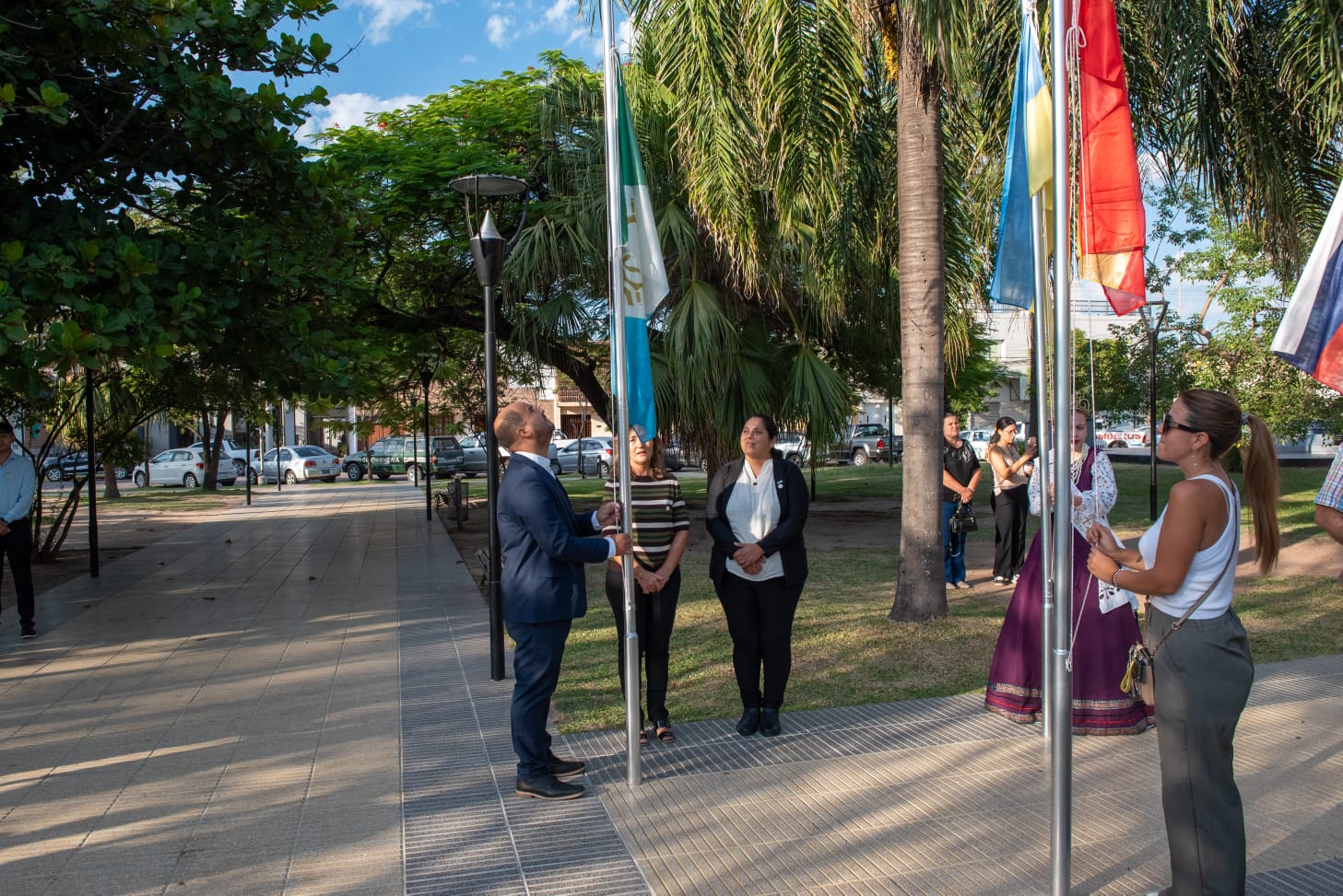 En la mañana del domingo 1 de marzo, las actividades por el 114° aniversario de Presidencia Roque Sáenz Peña comenzaron con el tradicional izamiento de banderas en la Plaza San Martín, con la presencia de instituciones y vecinos que acompañaron este emotivo momento.