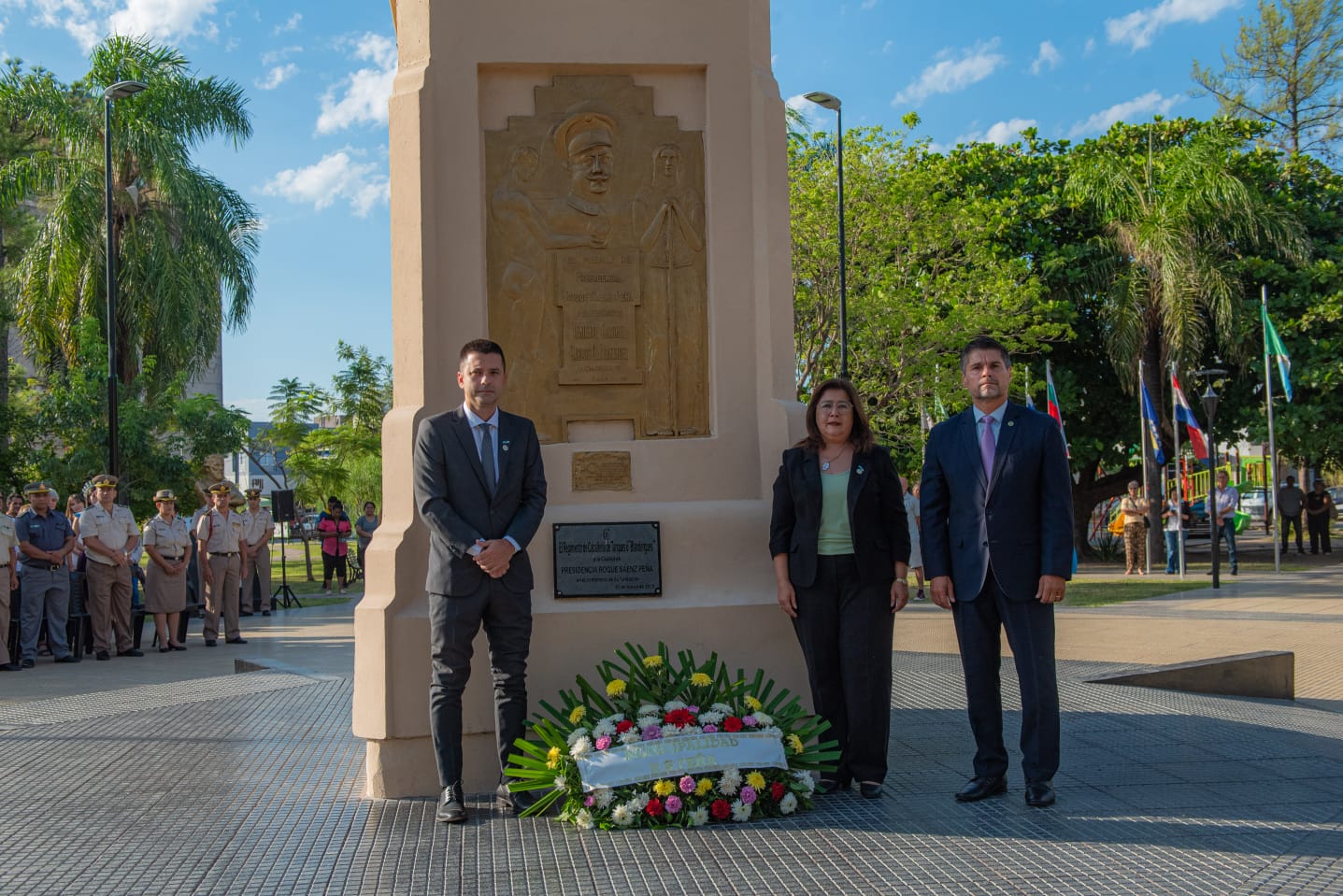 Luego, el acto continuó con el izamiento de la bandera de Sáenz Peña en la Rotonda de las rutas 16 y 95, reafirmando el orgullo y el sentido de pertenencia de toda la comunidad.