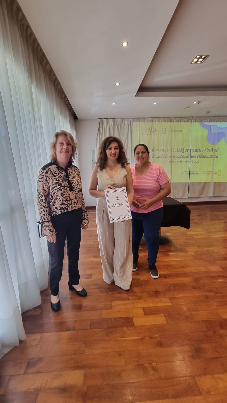 La entrega estuvo a cargo de la Concejal Soledad Pérez, quien hizo llegar el reconocimiento a dos de las impulsoras de la propuesta: la Dra. Andrea Mustafa, Directora de SIAPA y la Dra. Mariela Mercadin,Subsecretaria de Articulación Sanitaria.